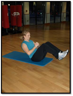 - Clasp hands together and lift feet 6” of the ground and lean back slightly