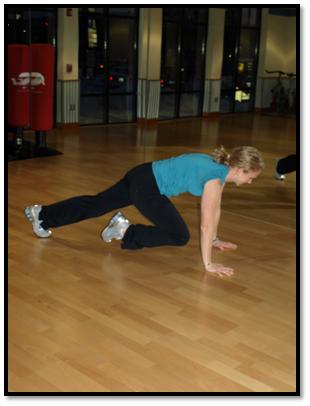 Mountain climbers are one of my favorite exercises to get the heart rate up. Added bonus...it engages your core and works your shoulders too! Throw it in there after 3 or 4 exercises to intensify your workout.
